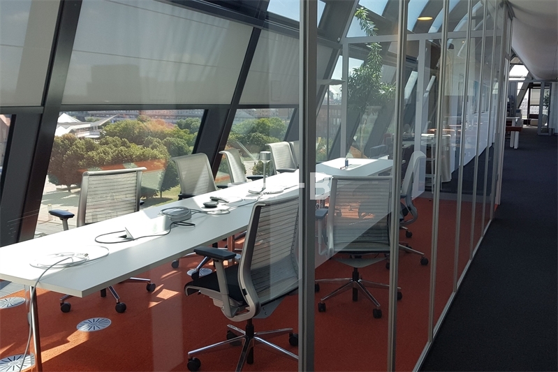 - im 7. OG steht eine hochwertig ausgestattete Conference Lounge mit vier Tagungsräumen,