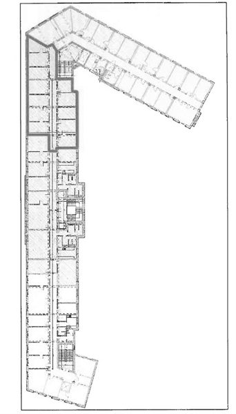 Der repräsentative Bürobau wurde im Jahr 1942 als 7-geschossiges Eckhaus errichtet und verfügt über 3 Eingänge mit 4 Personenaufzügen und einem Lastenfahrstuhl, der den Kellerbereich mit Lager- und Archivflächen erschließt.